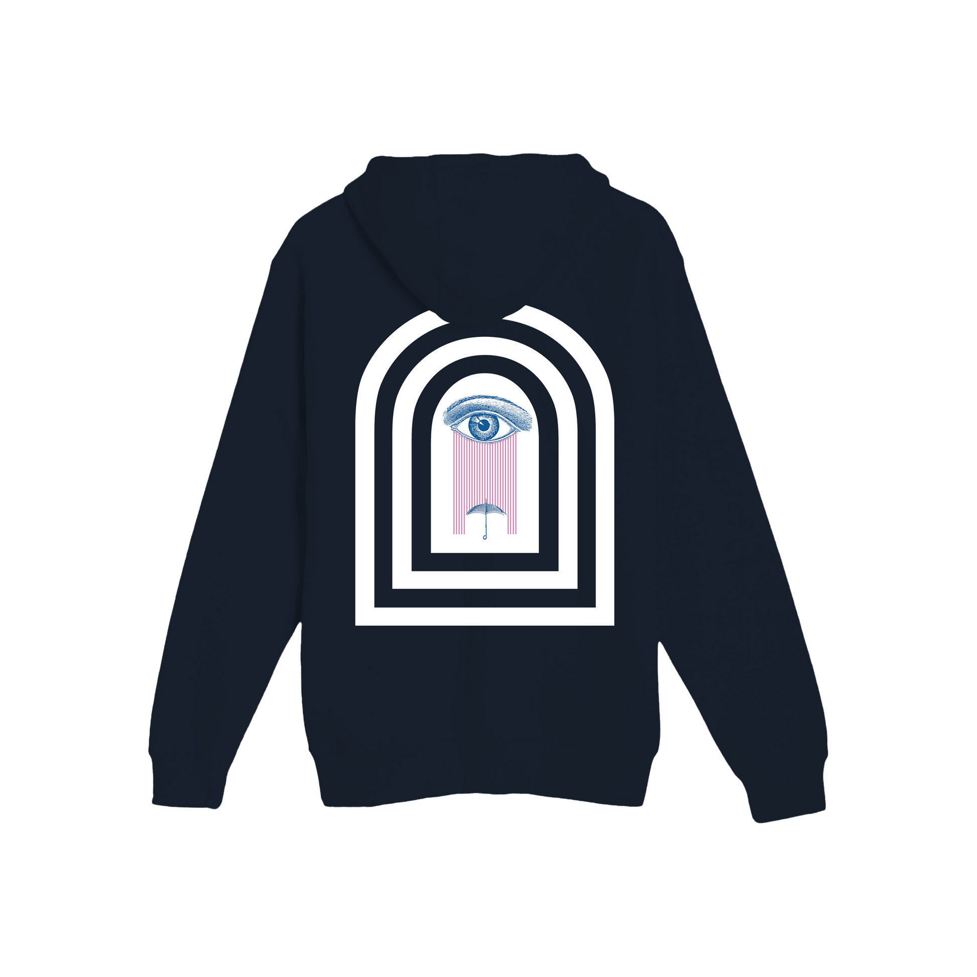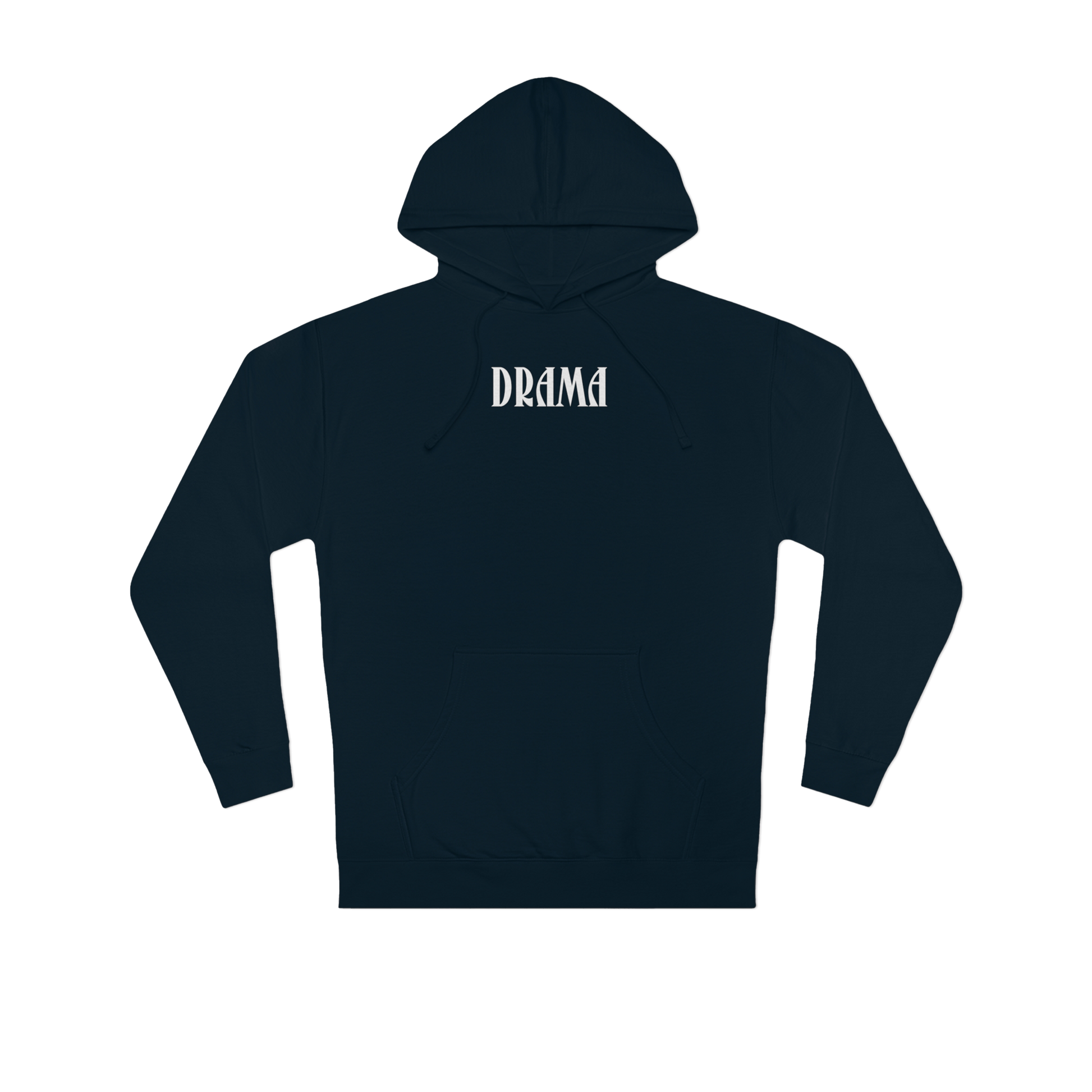 Made from 80/20% cotton/poly blend, this navy midweight hoodie features our DRAMA logo on the front, and Dark Rain graphic on the back. Made with three-panel fleece lining, double stitched, runs true to size. This item will ship within 5 business days. Please note that all sales are final.