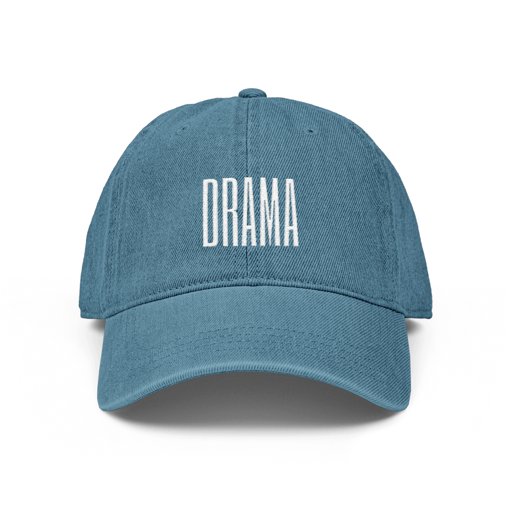100% cotton, pigment-dyed, denim hat with the DRAMA logo embroidered in white. It features an unstructured, six-panel, low-profile design and adjustable strap closure. This item will ship within 5 business days. Please note that all sales are final.